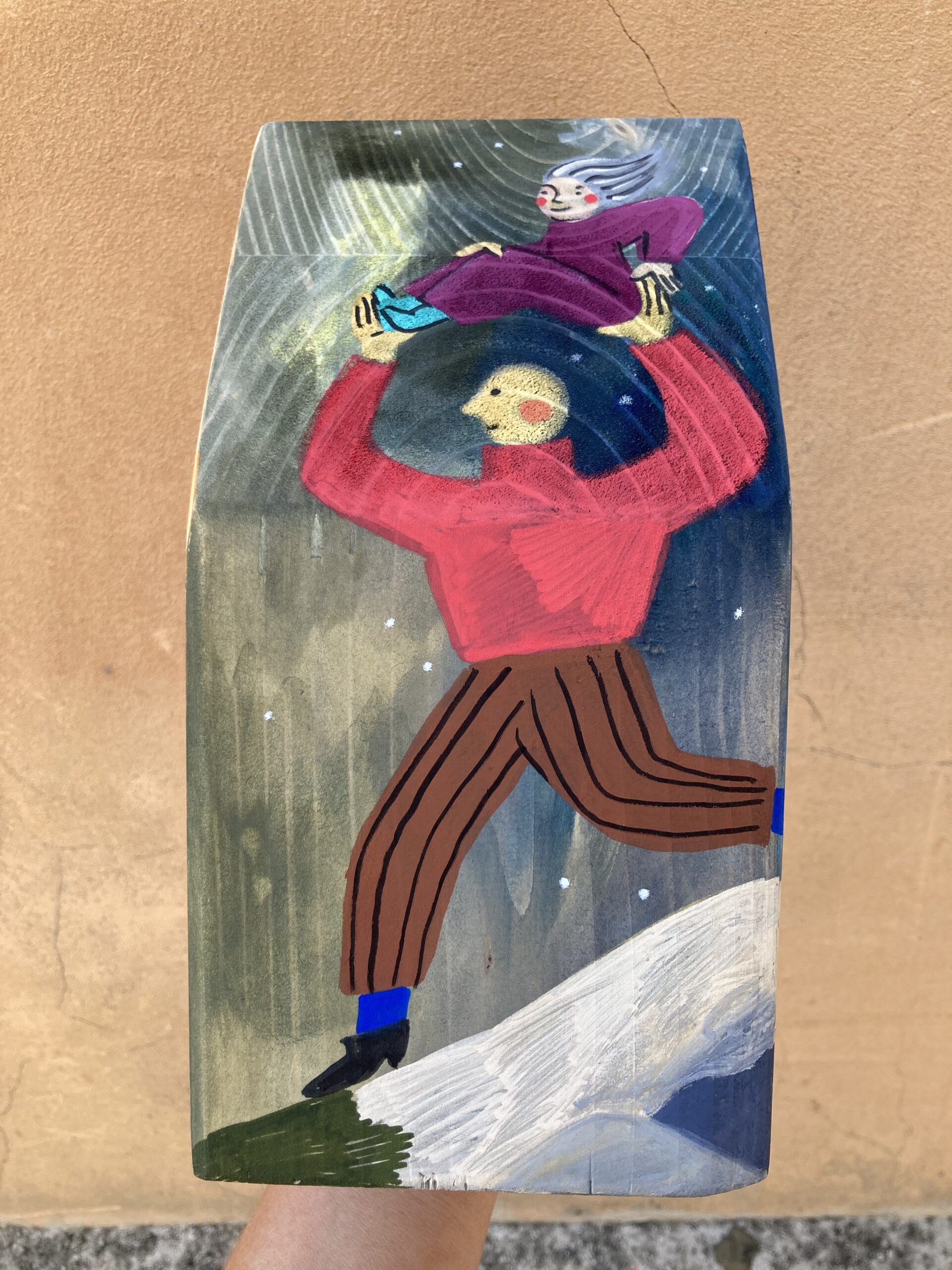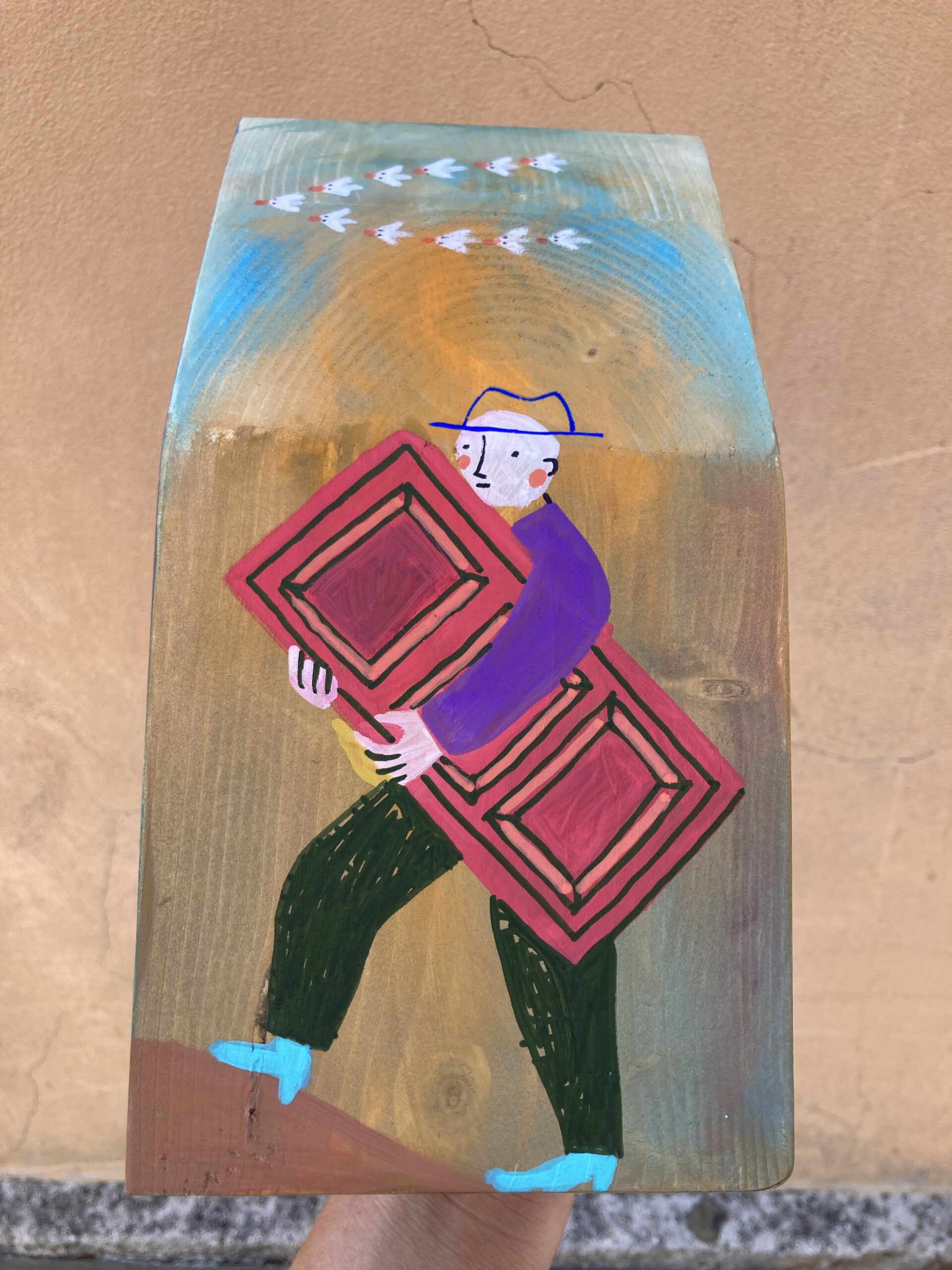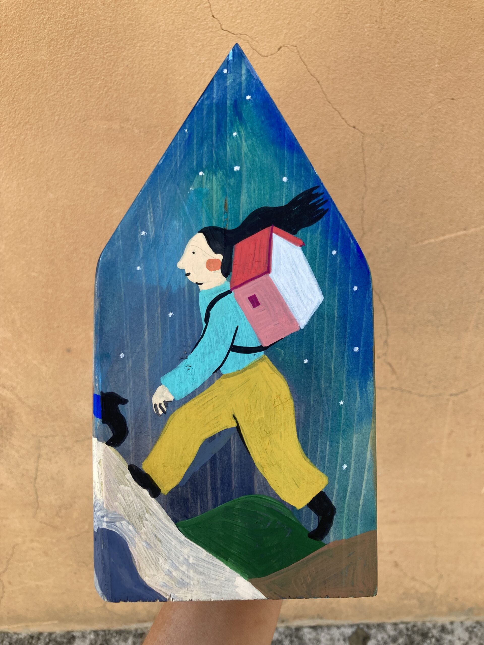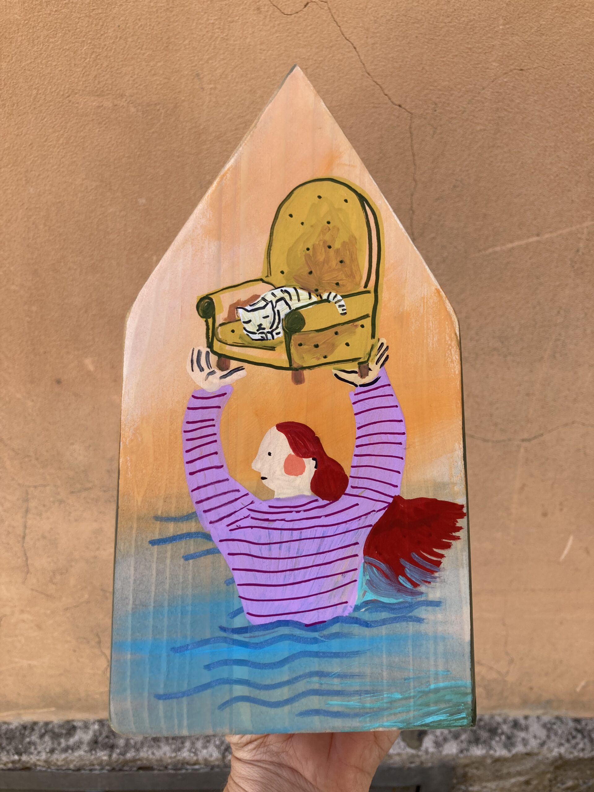 Il legno massello è un materiale naturale bellissimo che adoro utilizzare e dipingere: le case di legno mi ricordano quelle dell’infanzia che ci si costruiva da soli come riparo dai mostri con i denti aguzzi. Ognuna e’ ispirata a un tema, un’idea, un colore e una sensazione sempre diversi, quindi le pareti si possono leggere come le pagine di un libro pieno di figure.