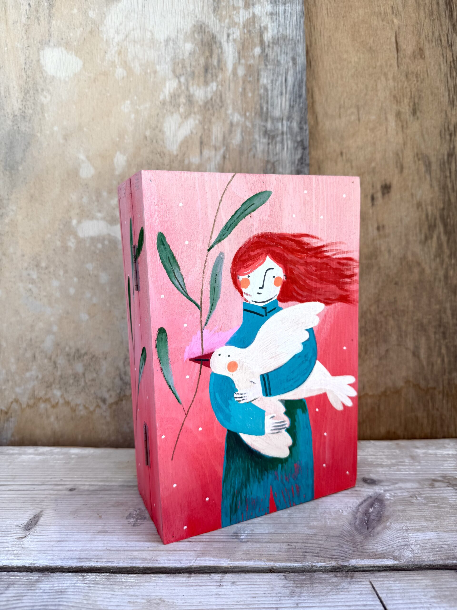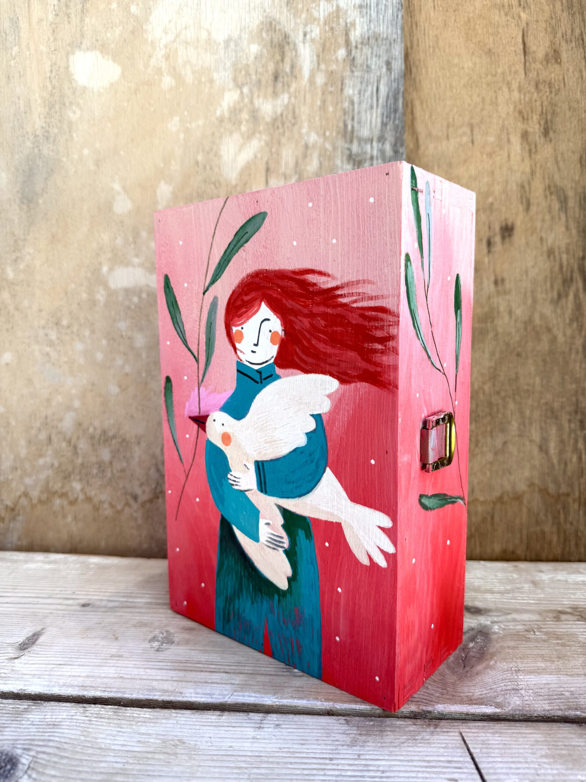 Le scatole in legno dipinte sono assolutamente originali, dipinte con tecniche miste in un solo unico esemplare. Ho iniziato a dipingere e disegnare tutti i giorni quando ero piccola e non mi sono più fermata! Queste coloratissime scatole non sono fatte in serie e piacciono ad ogni età. Sono originali, uniche e interamente dipinte a mano su legno.Mi aiutano a portare fuori e tradurre tutte le idee e il mondo di colori e personaggi fantastici che abitano la mia testa.